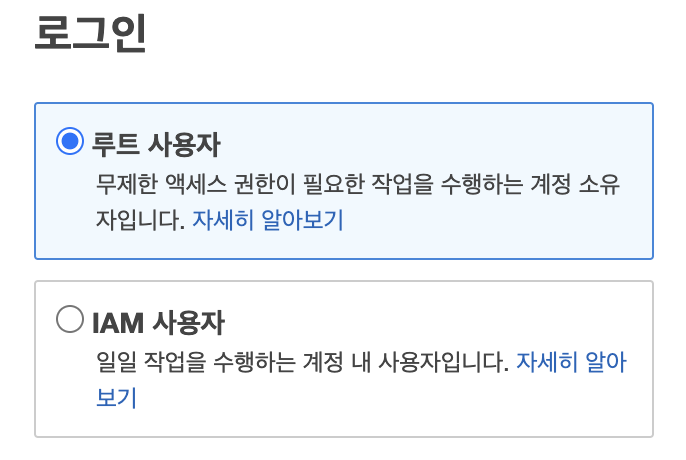 AWS 회원가입을 진행하면 해당 계정은 root 사용자다.