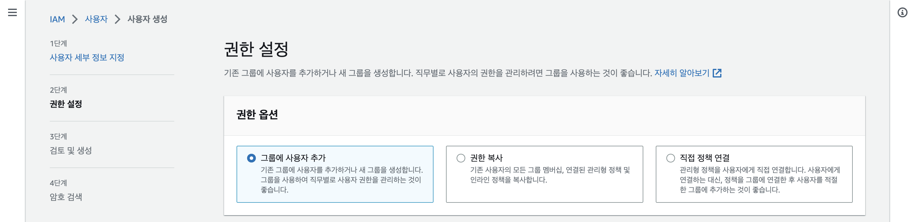 루트 계정에서 IAM 사용자를 만들어 각 사용자마다 제한된 권한을 부여할 수 있다.