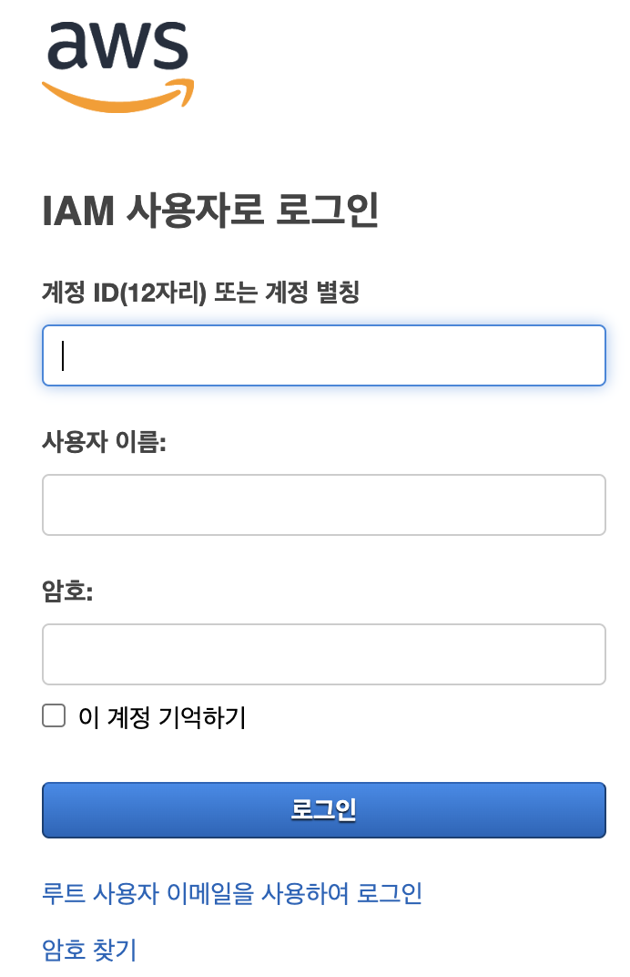 URL을 누르면 바로 IAM계정 로그인 창으로 안내된다.