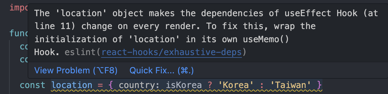 저렇게 코드를 작성했을 때 VSCode IDE에서 useMemo를 사용할 것을 권장한다.
