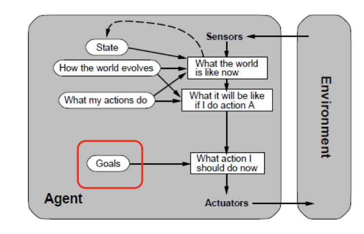 즉, 에이전트가 인식을 받고 외부 행동을 결정하는 것을 포함. 이것은 에이전트의 행동에 대한 인식을 가지고 있으며, 이것을 기반으로 다음 행동을 결정 (Percepts -> Deciding)
