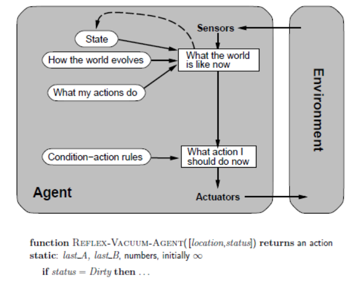 - Agents : 환경을 인식하고(센서 사용) 환경에 대해 행동(Actuators 이용)하는 무언가