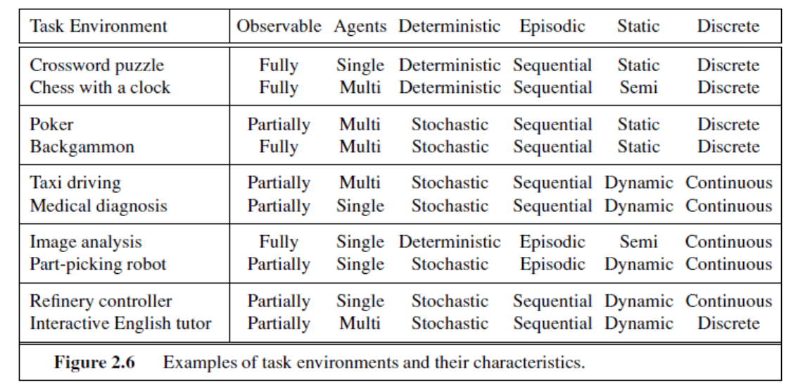 - 예를 들어, 자율 주행 자동차의 환경은 도로, 다른 차량, 보행자 등