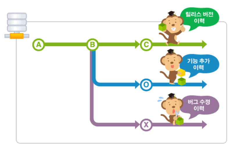 Branch를 통해 개발한 뒤Git에 병합하는Merge작업 또한 가능하며