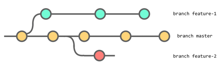 아래 사진은Master를 같은 환경으로 하여 두 갈래(feature)로 나눠 작업하고