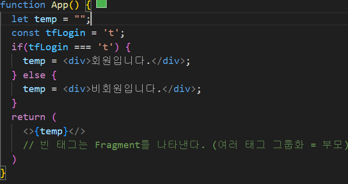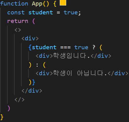 JSX 내부 JS 표현식으로 사용이 불가능합니다.따라서 조건부에 따라 {} 안에서 삼항 연산자를 사용합니다.