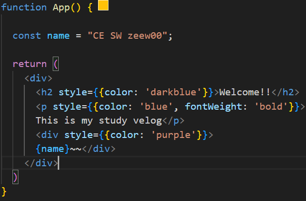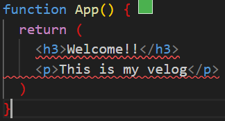 import React from 'react'; function App() { return ( <h3>zeew00 velog 방문을 환영합니다!!</h3> ); } export default App;- 위와 같이 작성하면 웹 상에서 작동(구현)이 불가능하므로 바벨(babel)이 다음과 같이 JS 코드로 해석해줍니다: