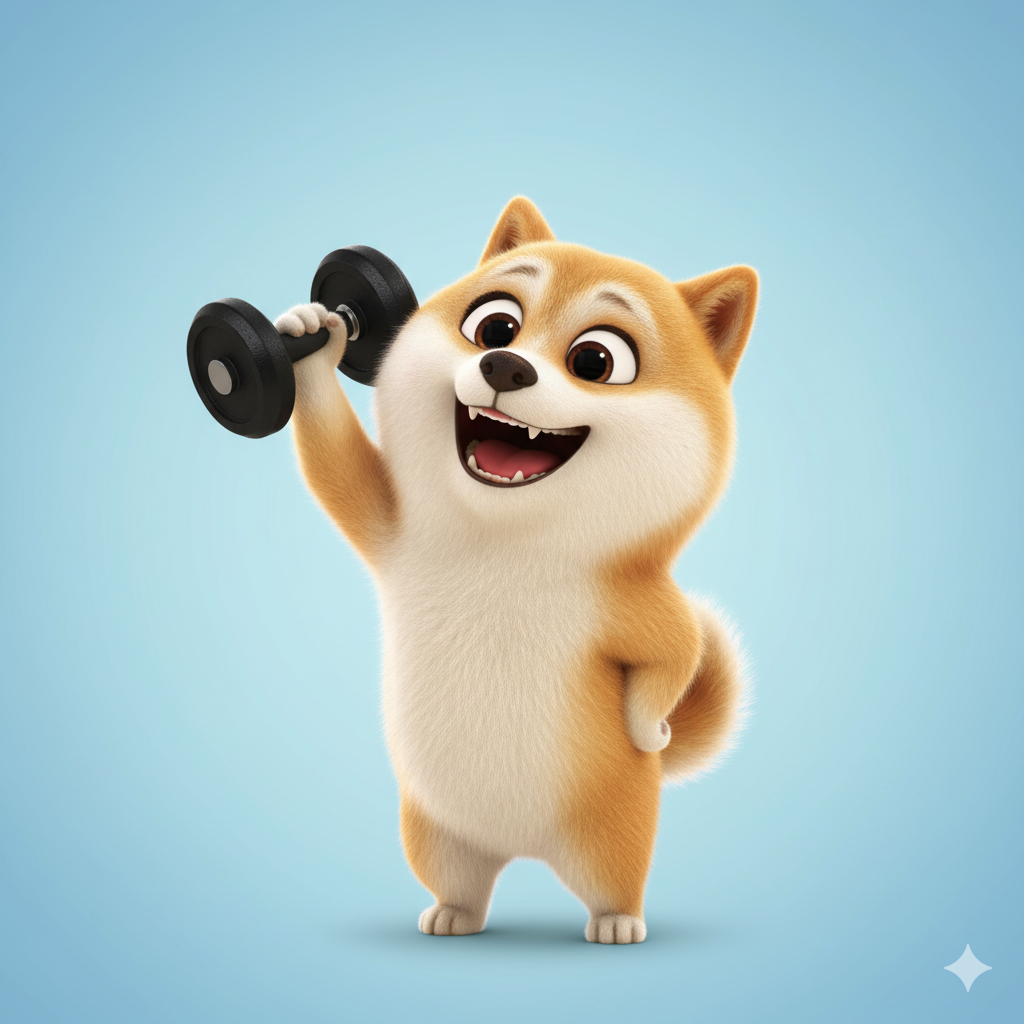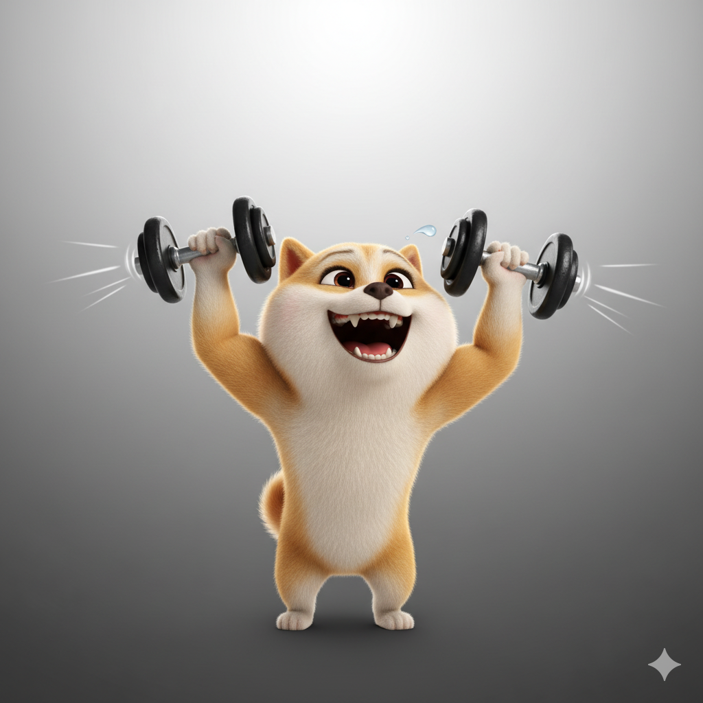 | 표정/포즈 | 덤벨을 들고 기쁨을 표현하거나, 땀을 흘리며 달리기 중 자부심을 드러내는 장면. |