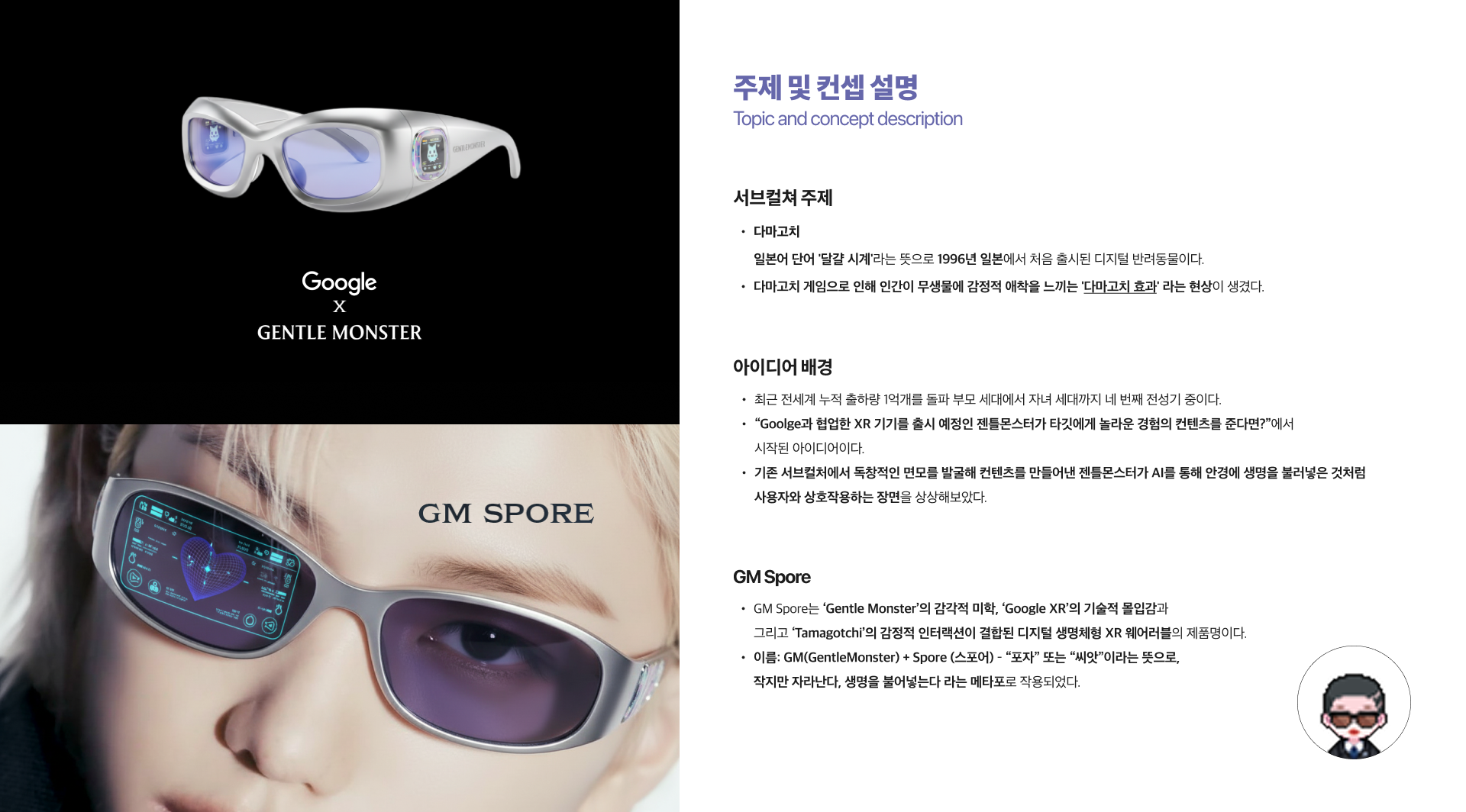 ์ด๋ฒ ์ฃผ์ ๋ ์ ํ๋ชฌ์คํฐ ร ๊ตฌ๊ธ XR ํ์ ์ฝ์ ํธ ์์ ์ ์์ผ๋ก, ์๋ธ์ปฌ์ฒ ํธ๋ ๋์์ ์๊ฐ์ ๋ฐ์ ๊ธฐํํ ๋์งํธ ์๋ช ์ฒดํ XR ์จ์ด๋ฌ๋ธ, โGM Sporeโ๋ฅผ ์ค์ฌ์ผ๋ก ํ๋ค.