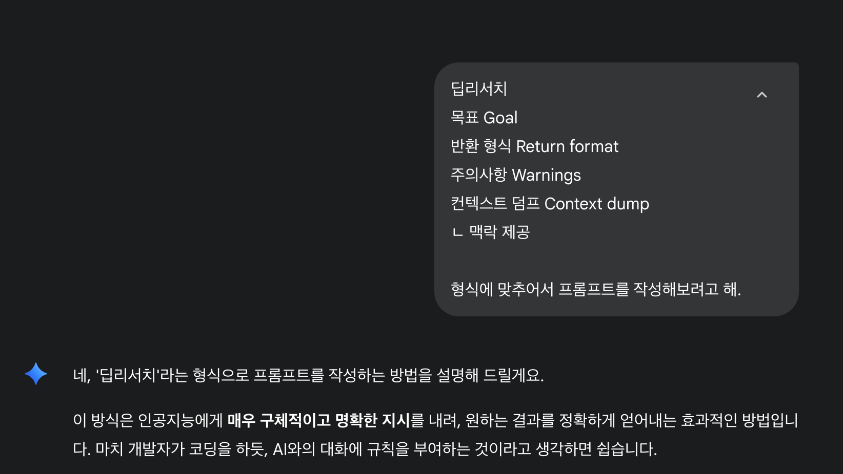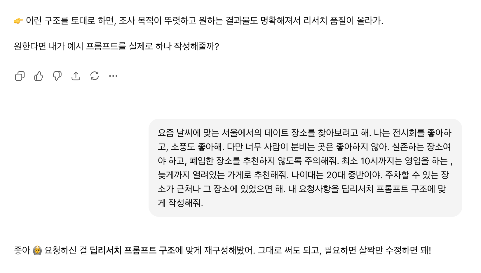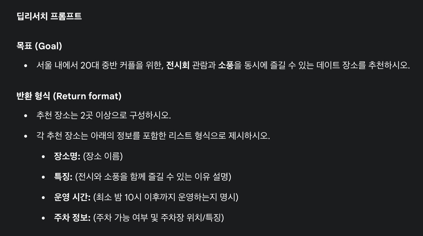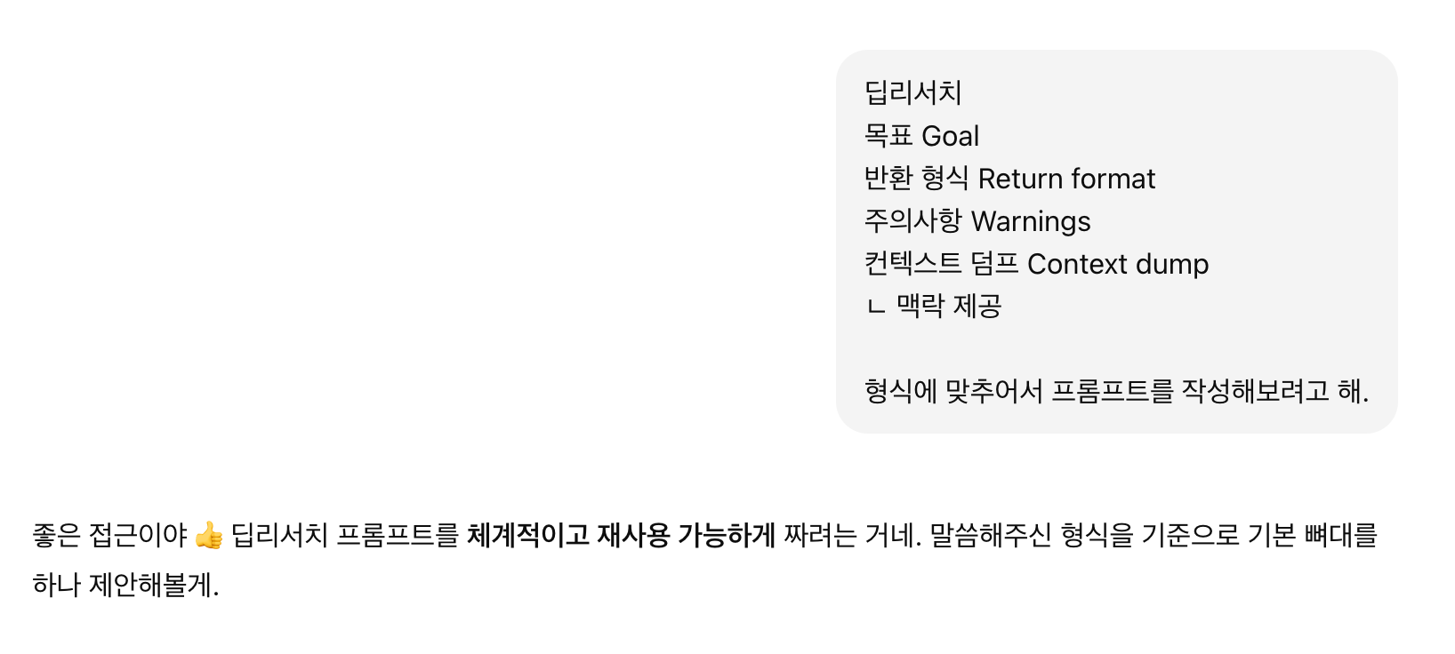 내용을 보내고, 딥리서치 프롬프트 구조로 작성 요청