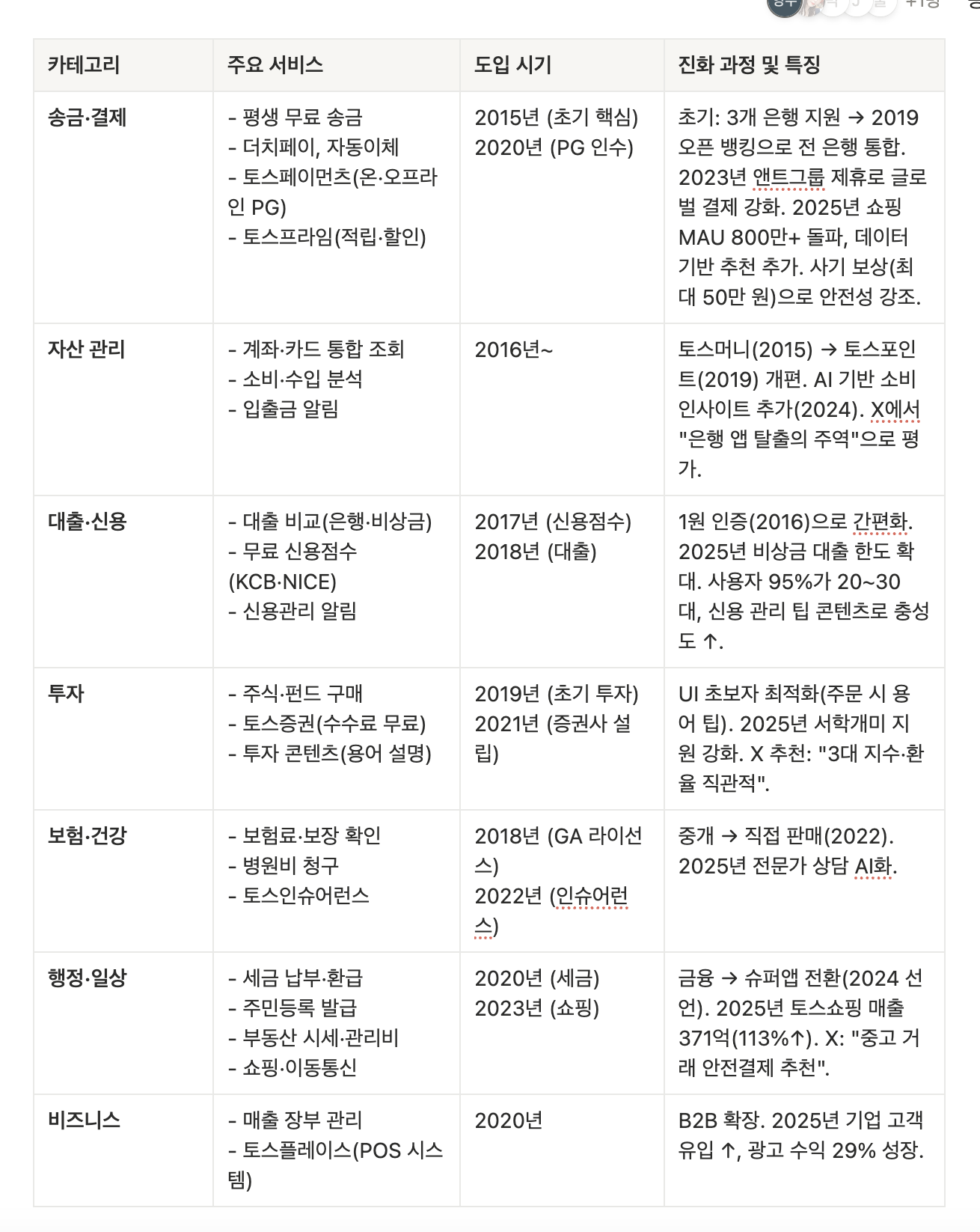 목표: 토스(Toss)의 성장 히스토리 및 핵심 서비스 분석을 통해 성공 전략과 시장 내 경쟁력을 파악한다.