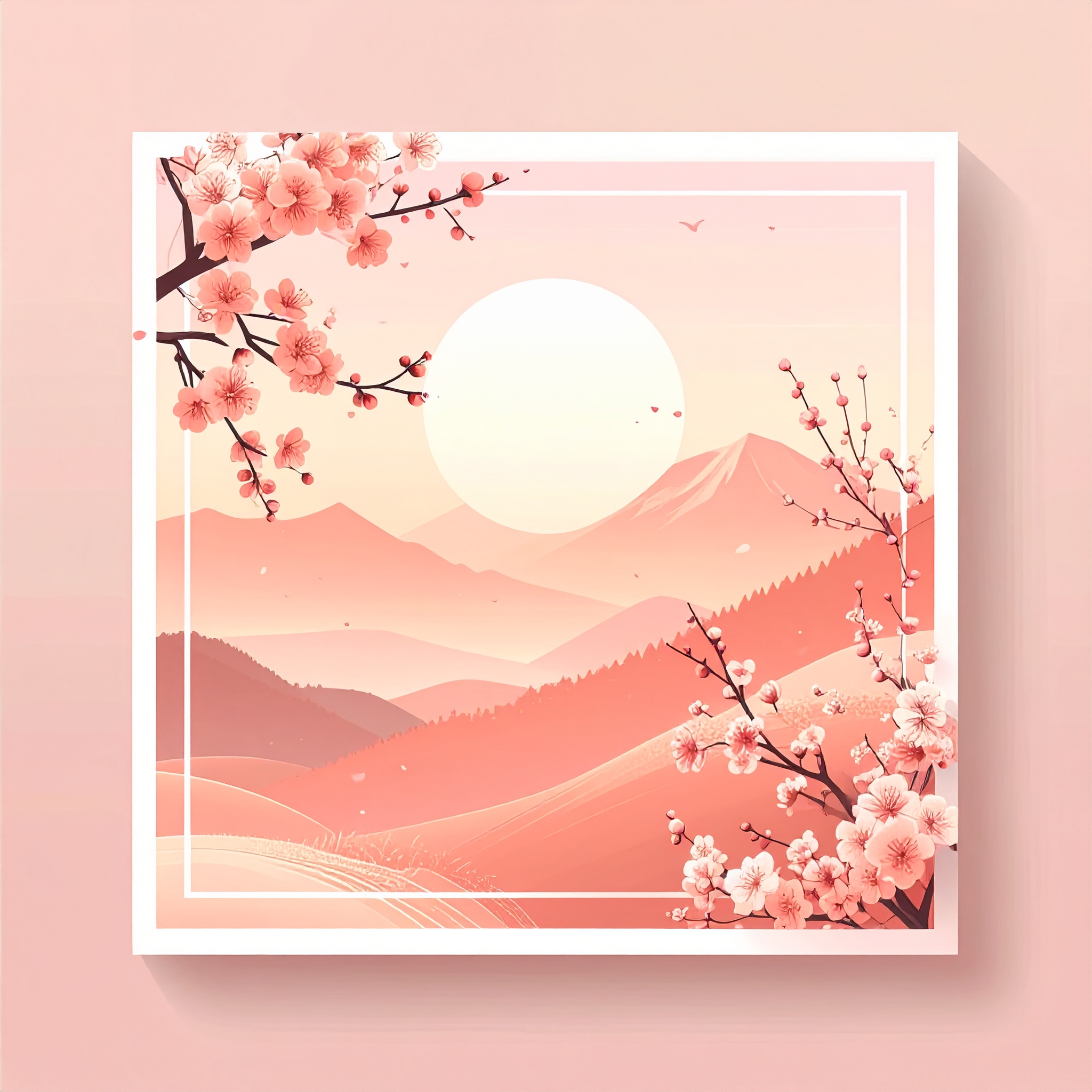 "Aesthetic social media template design for a spring-inspired brand. Soft peach gradients as the background, clean white frames for text, and subtle Japanese minimal patterns. Modern, cozy, and visually calming, optimized for Instagram."