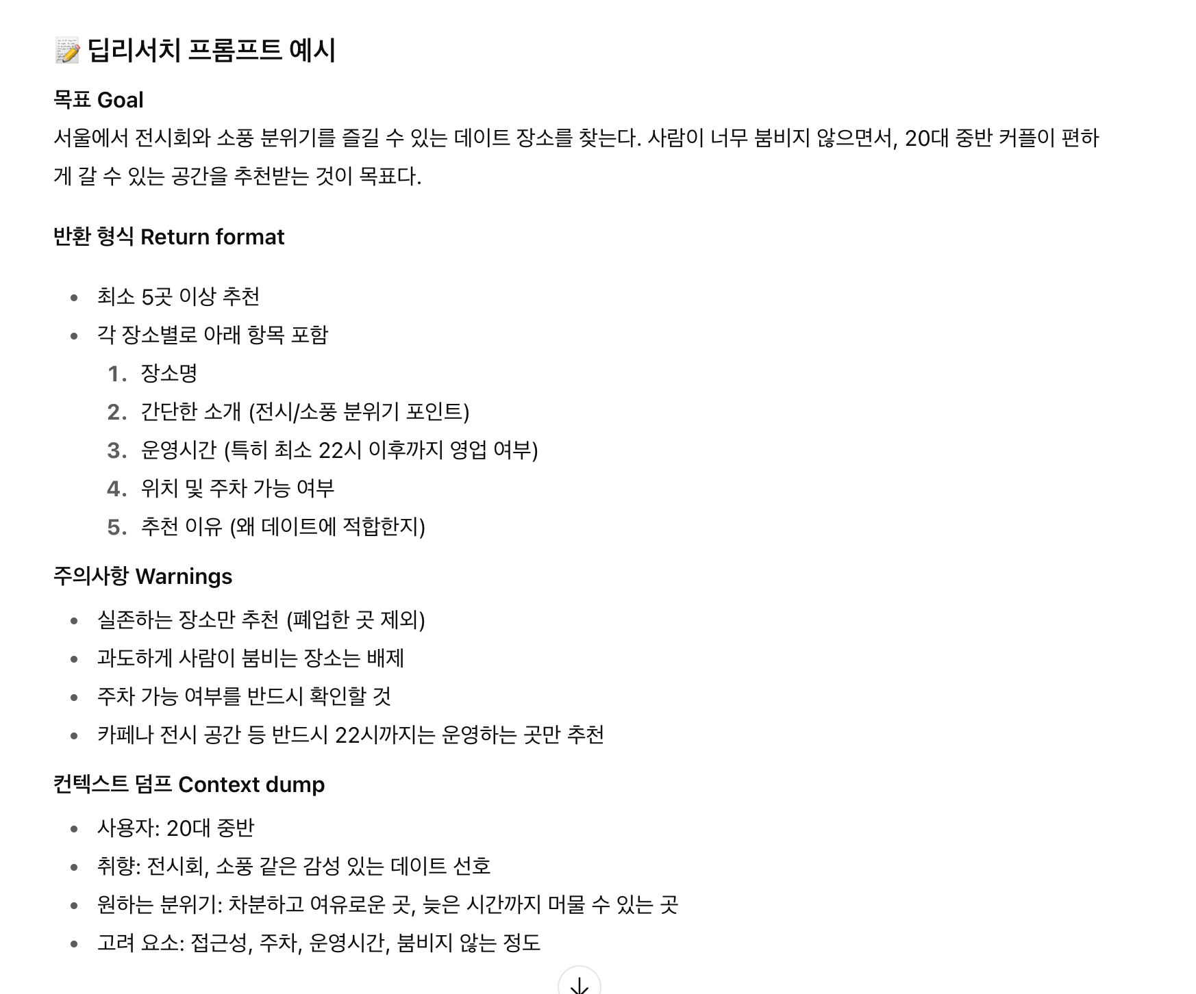 목표설정: 딥리서치 포맷 알려주기