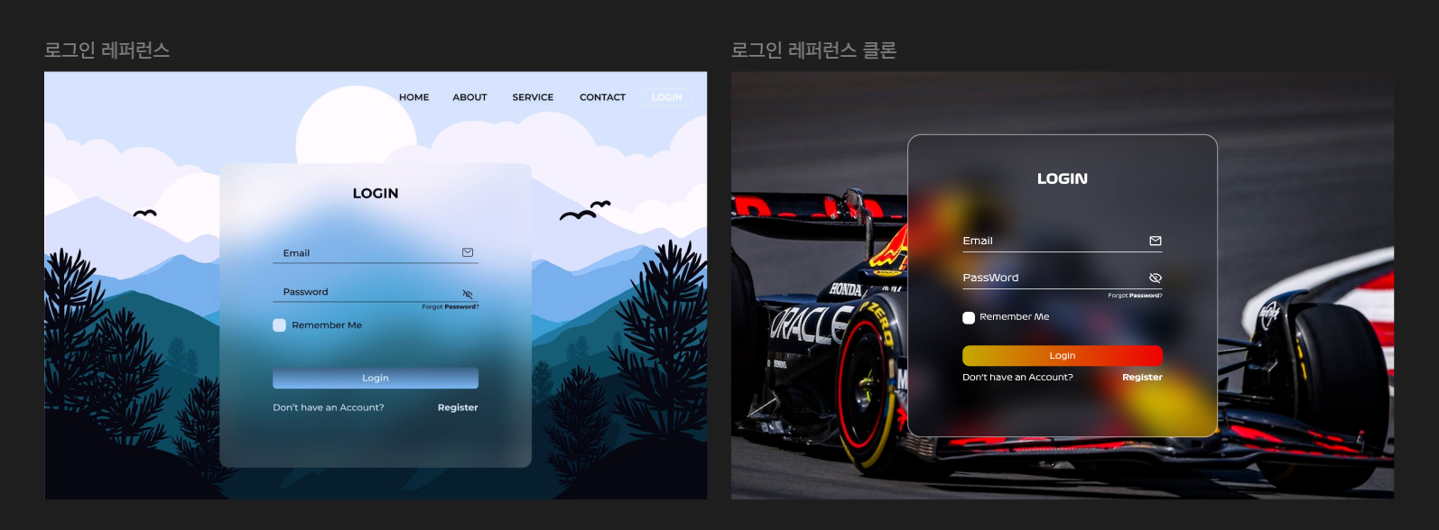 좋아하는 글래스모피즘 효과와 F1 전부 넣어서 클론해보았다!