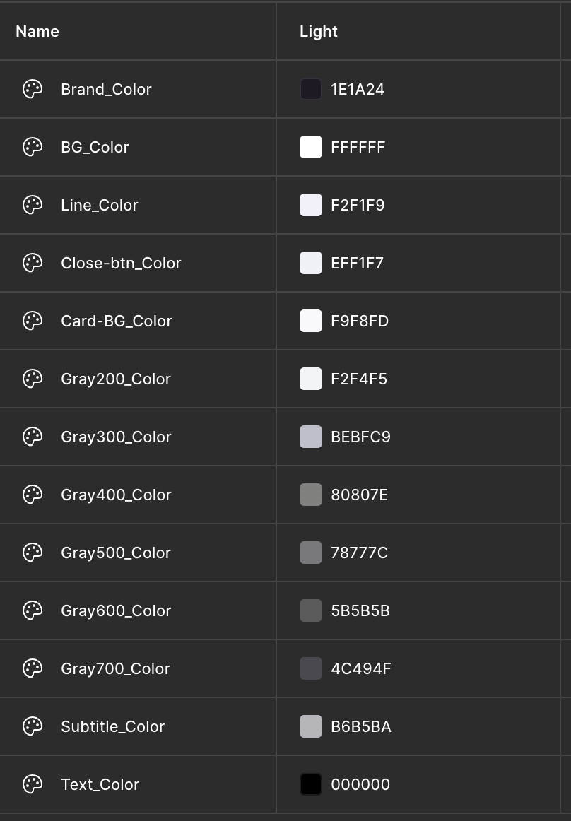 변수를 지정하면, Light/Dark 모드 간 변환이 쉬워진다.