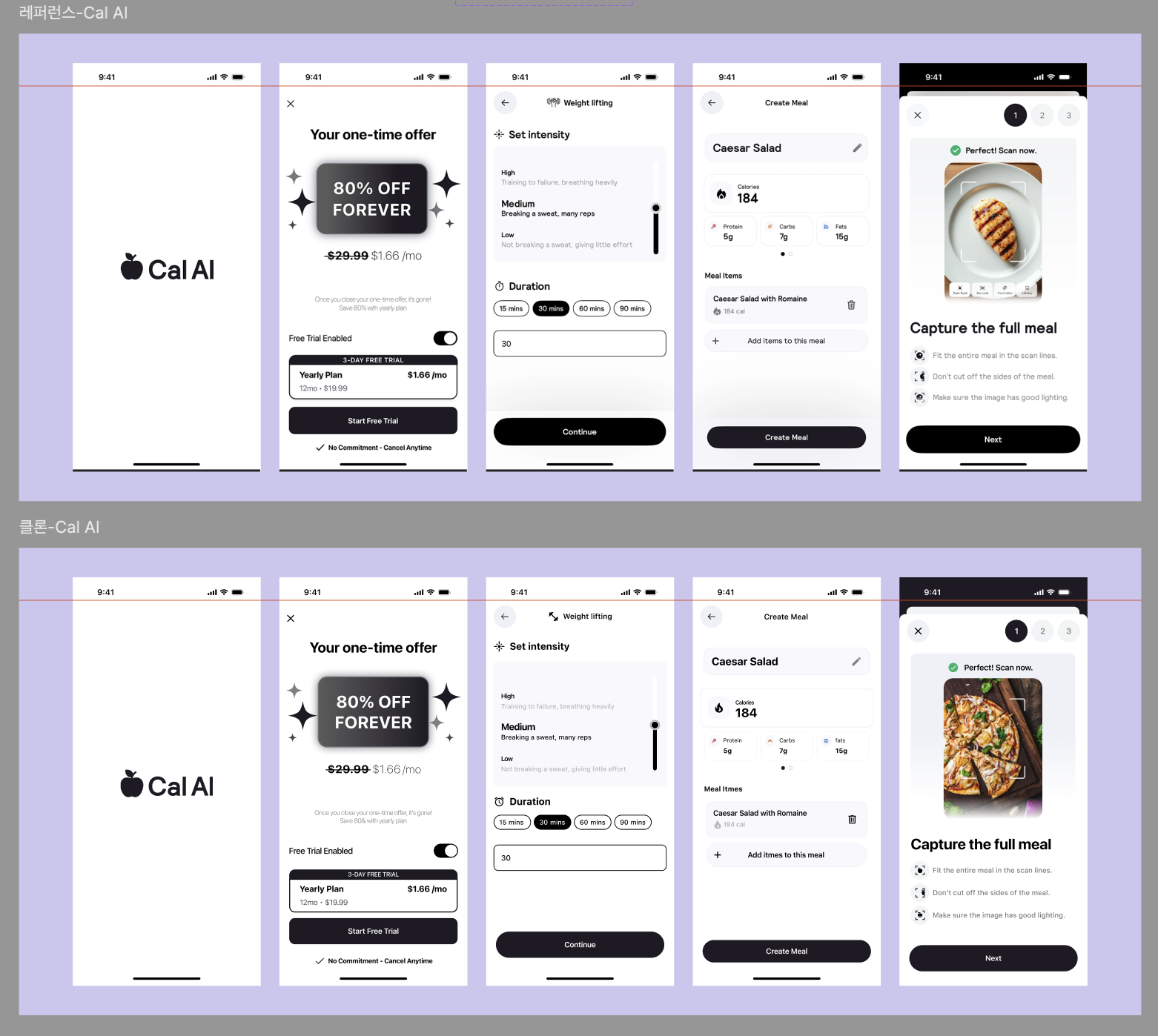 그래서 모빈에서 랜딩페이지~사용페이지까지 다양하게 나와져 있는 Cal AI 어플을 선정해주었다