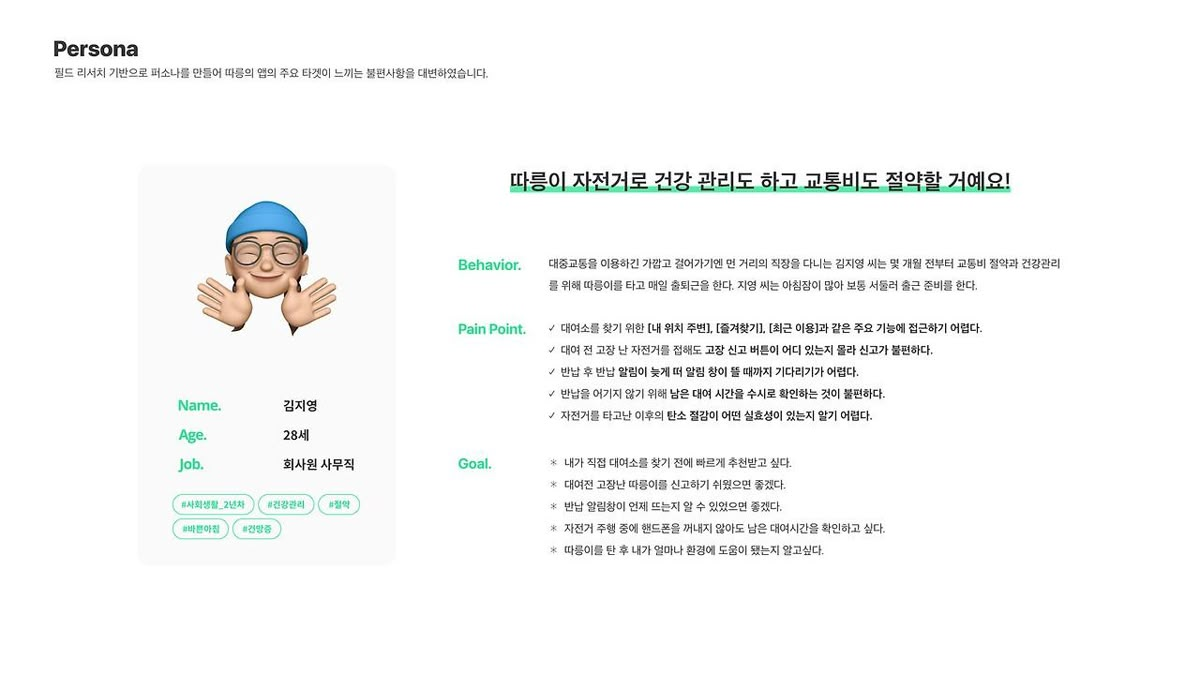 공통 행동 패턴과 니즈를 하나의 인물로 압축해 표현