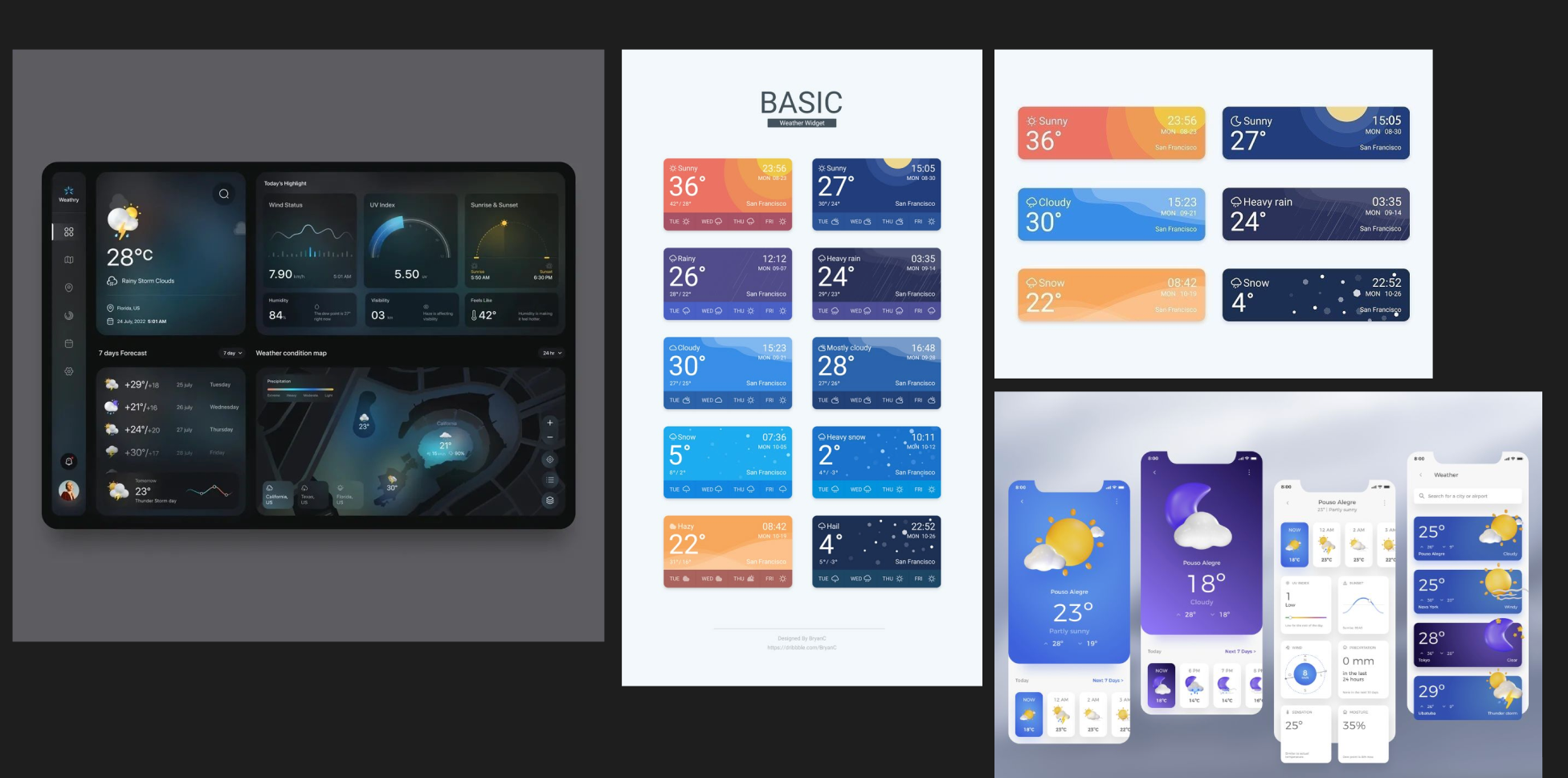 날씨 디자인은 모바일 앱 UI, 웹 앱 UI일 수도 있고, 혹은 날씨 알림 위젯 같은 완전히 다른 형태일 수도 있다.