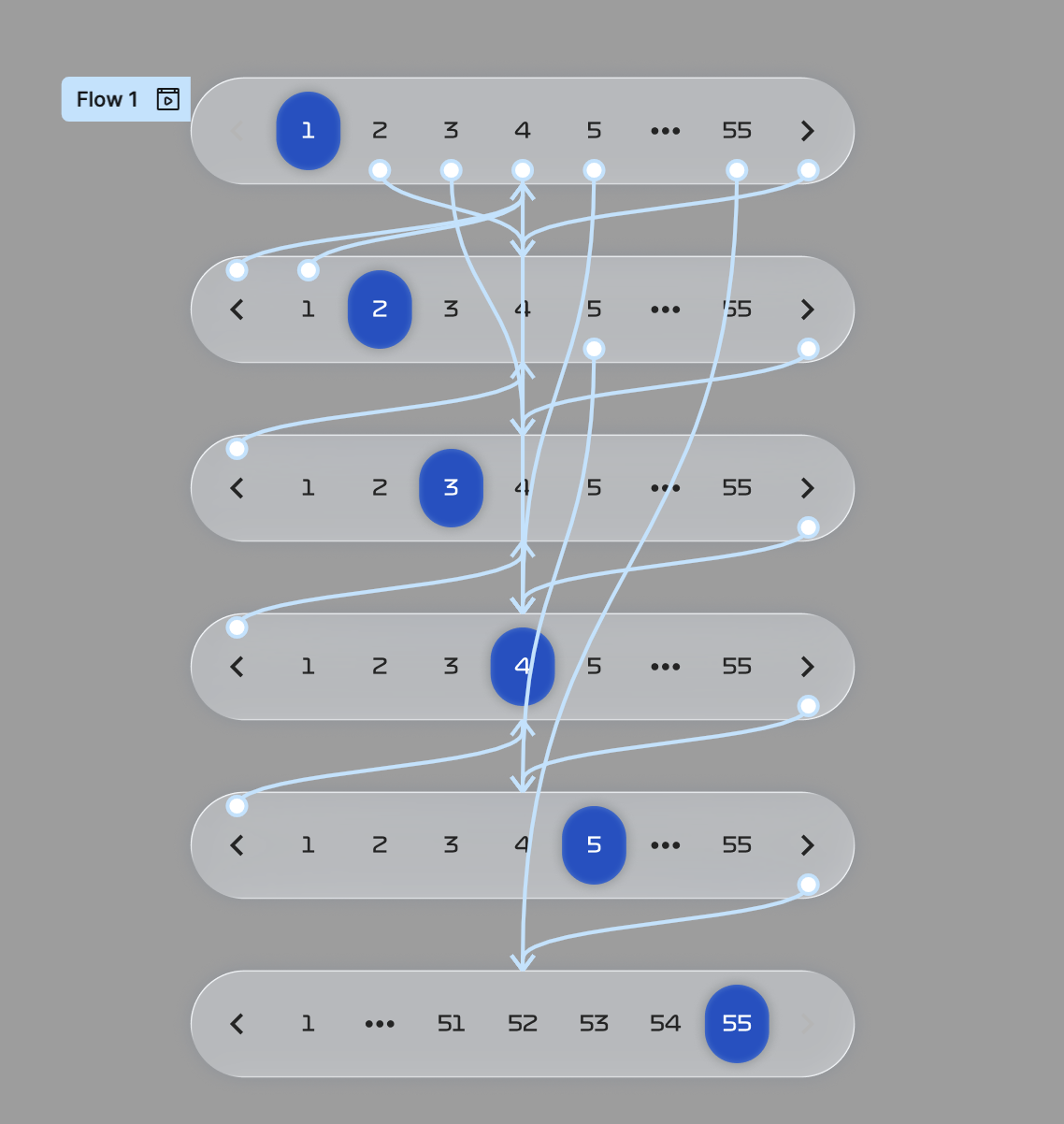 이를 단순하고 명확하게 만들기 위한 페이지네이션의 시각적 디자인과 흐름(flow) 을 설계해보세요.