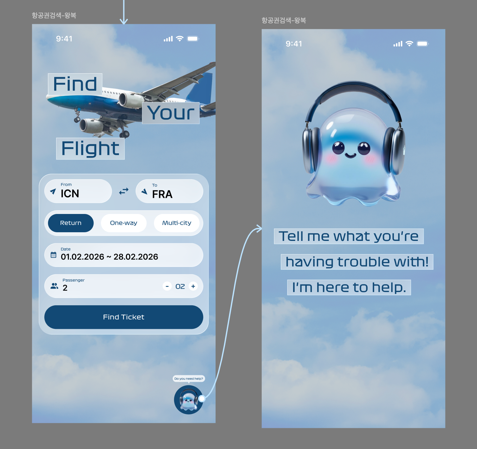 챗봇 상담 시 프로필이나, 어플 하단에 위치해서, 도움이 필요하신가요?를 여쭤볼거야.