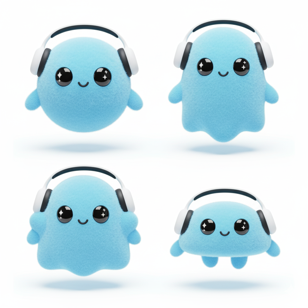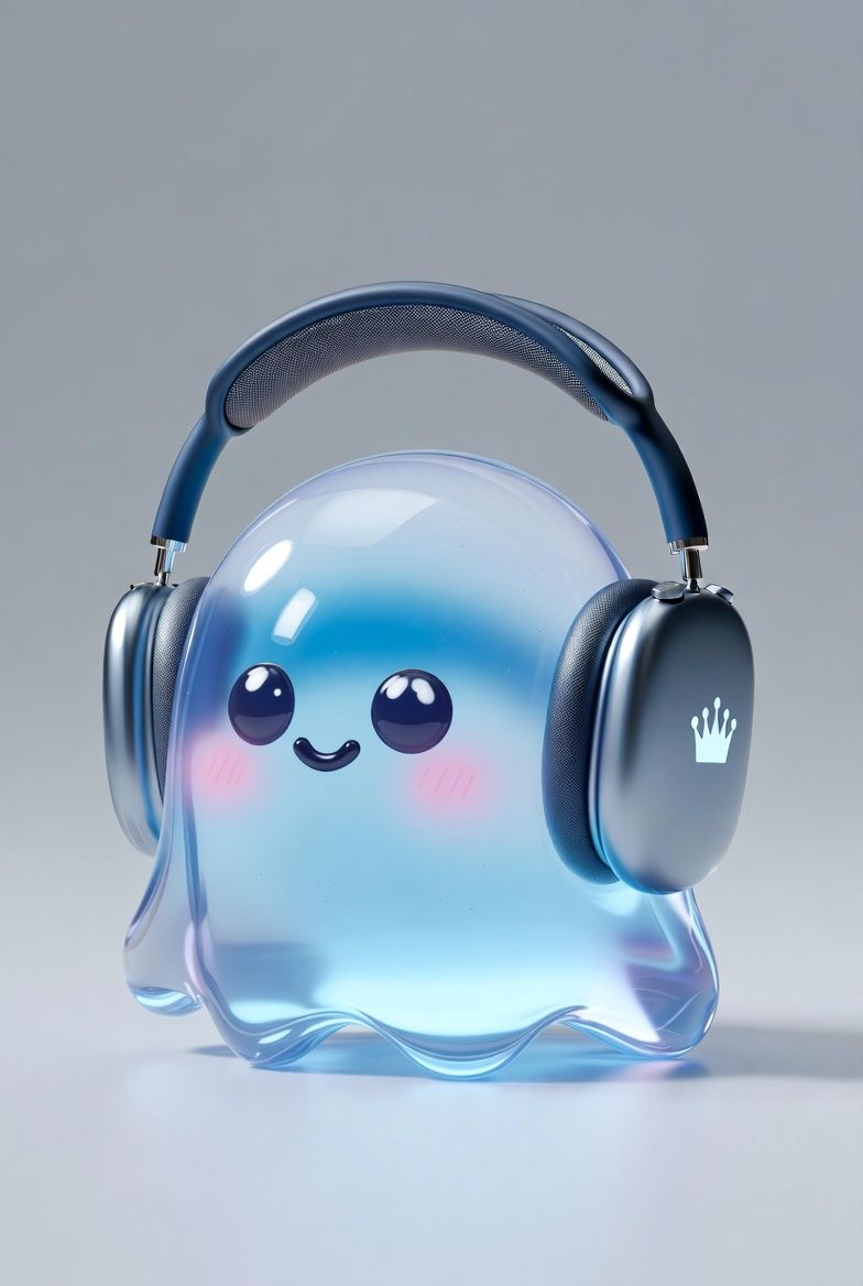 에어팟맥스를 착용한 어리고 귀여운 캐릭터를 제작해줘.