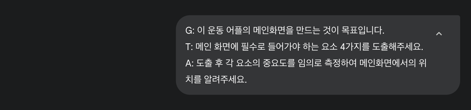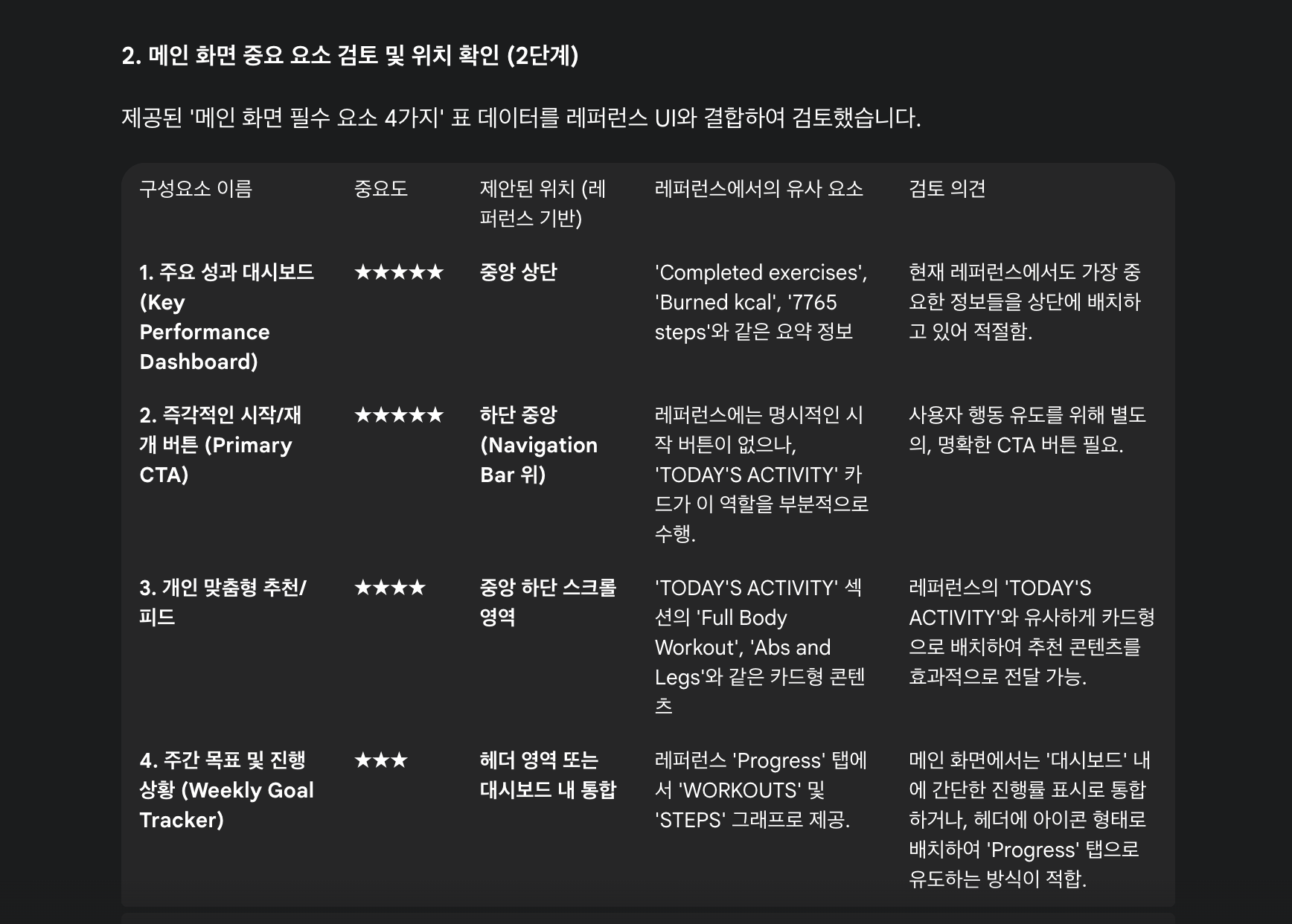 프롬프트에서 홈 화면의 중요요소를 골라달라고 했는데, 그를 참고해서 만들었다.