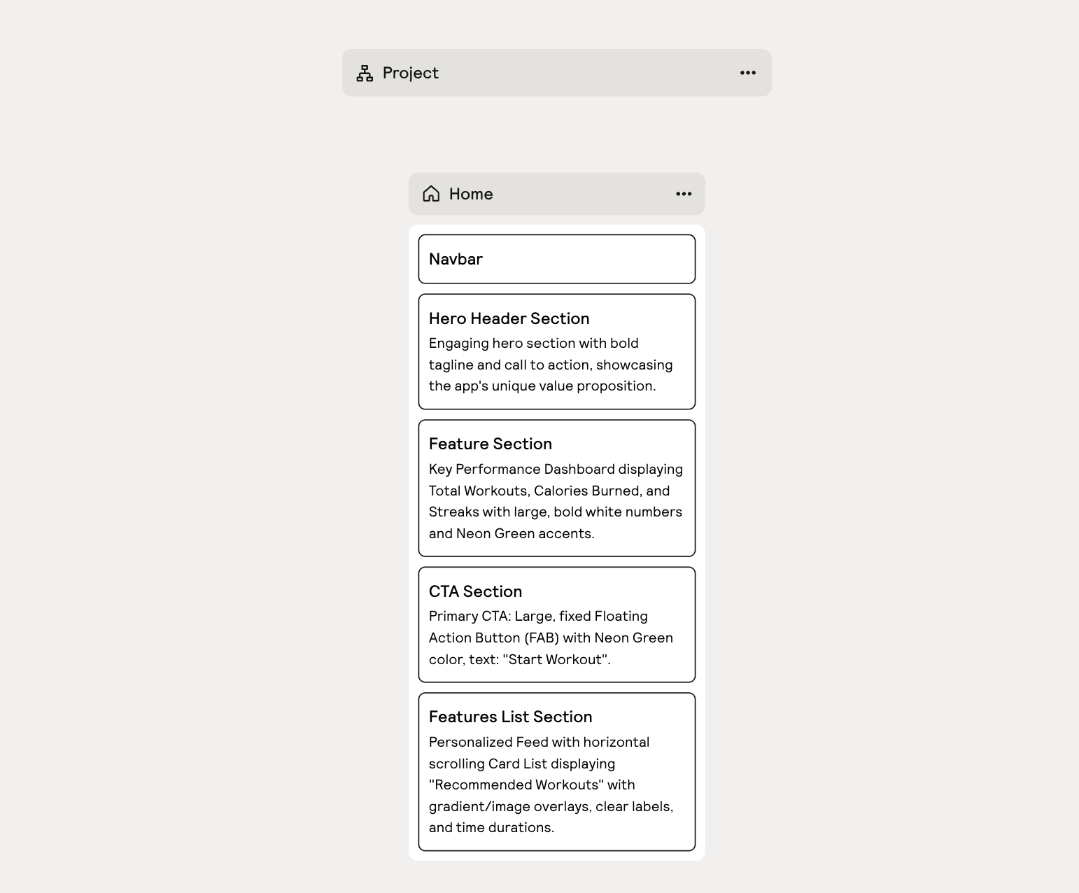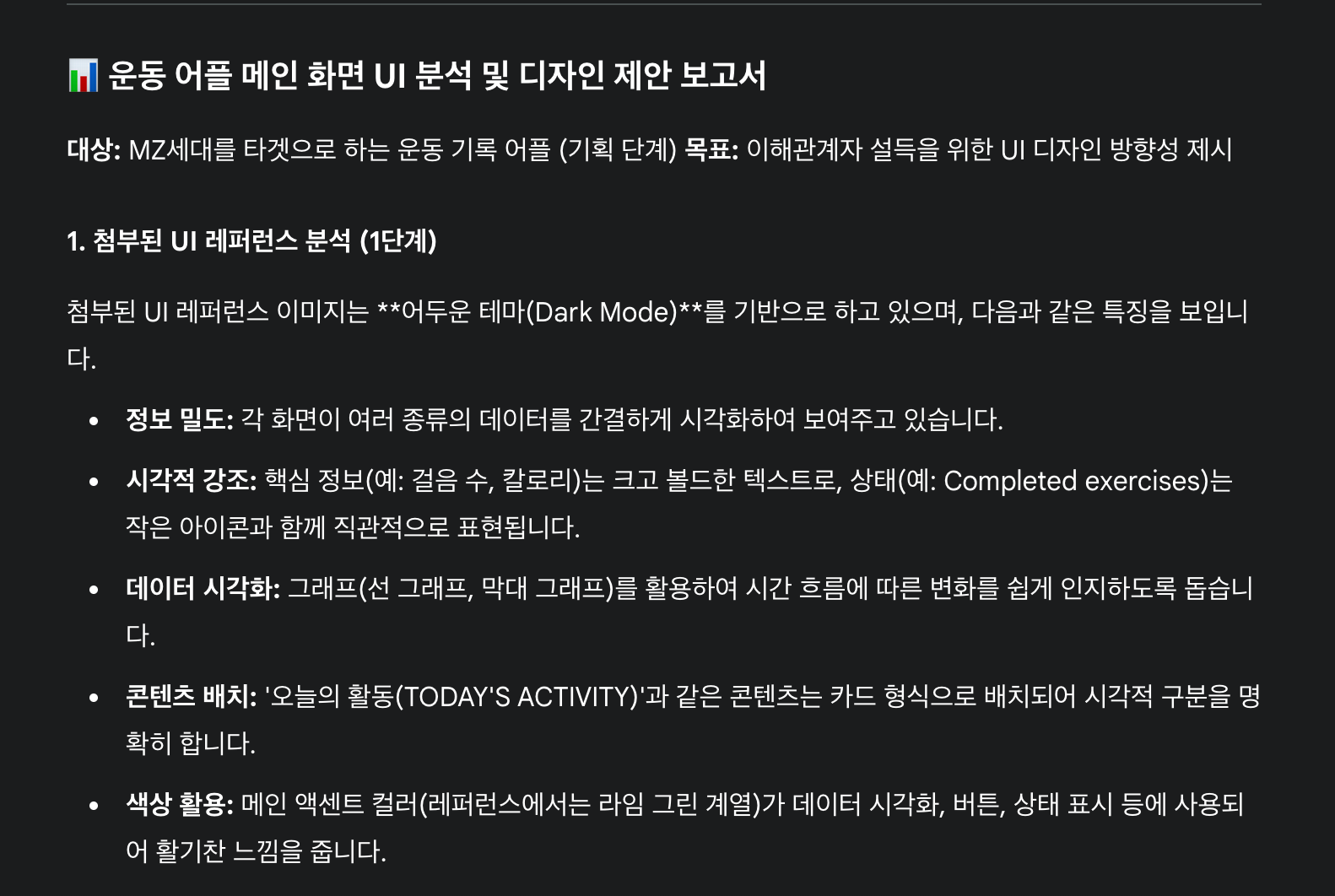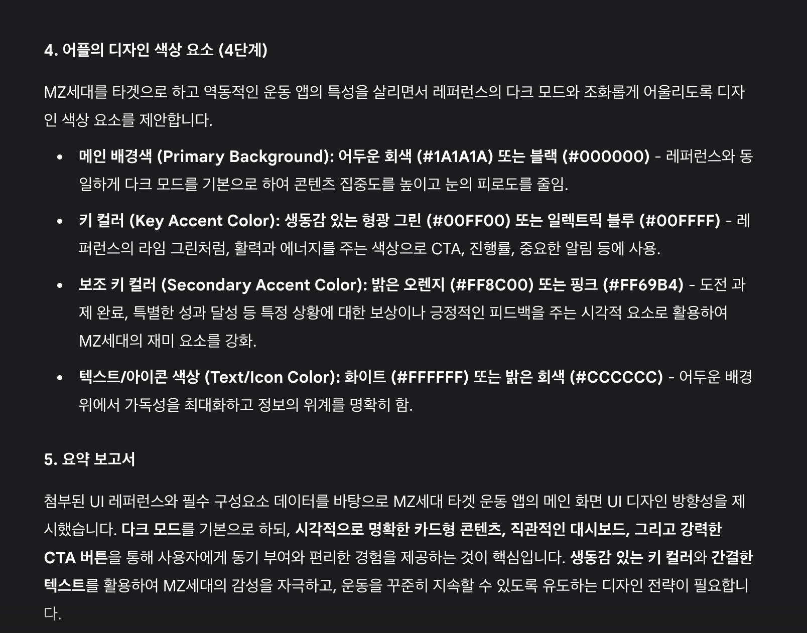 마지막 과제가 운동 어플 디자인이라서, 앞의 프롬프트 연습과 Relume 체험을 그와 관련해서 해보았다.