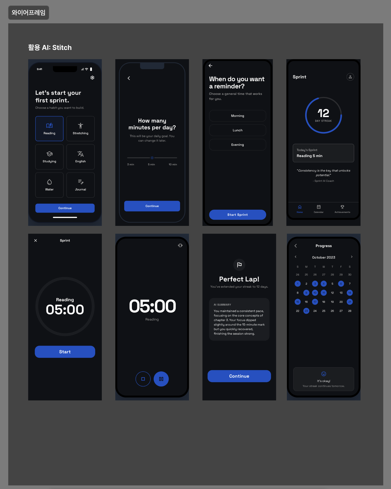 그록이 20가지 아이디어를 추천해주었고, 그 중 하나를 골라 평소 내가 개선하고 싶었던 미루는 습관을 고칠 수 있는 습관 형성 앱으로 구체화하였다.