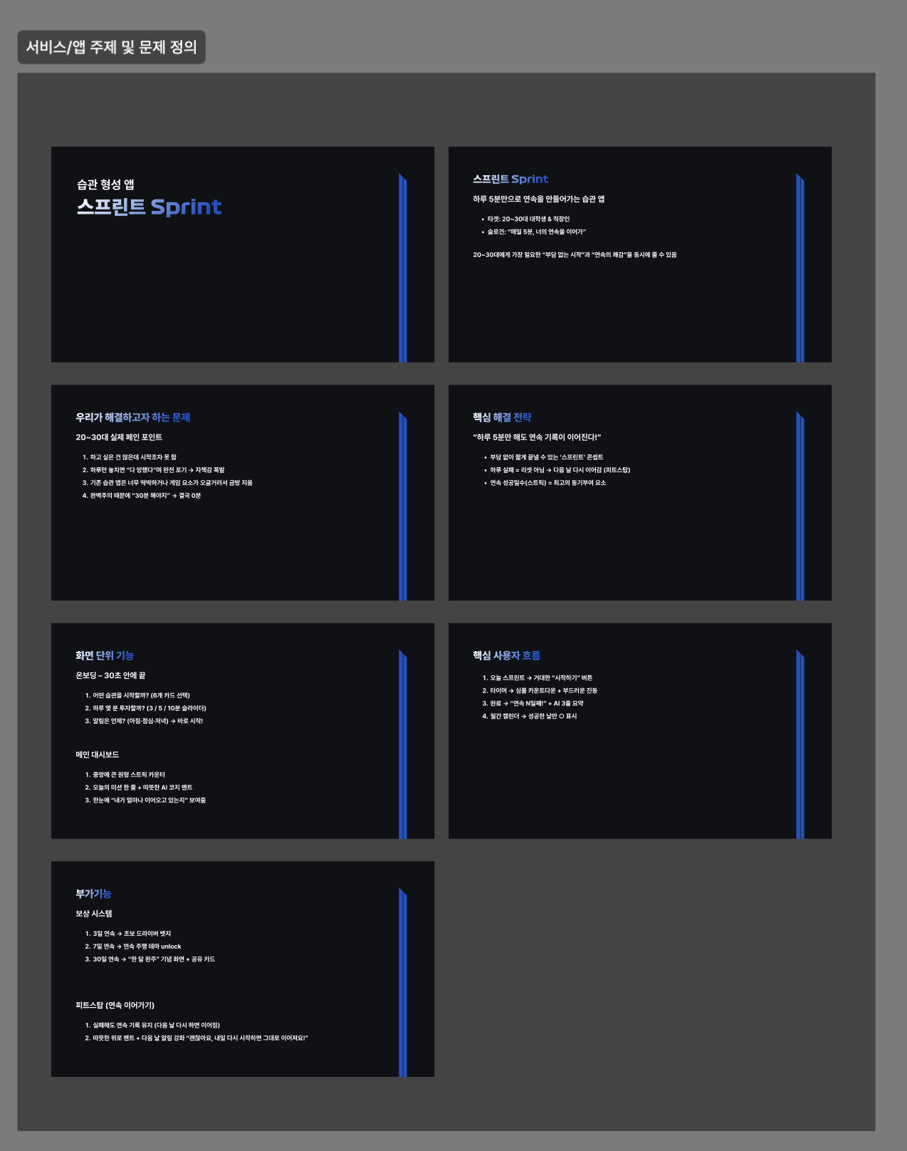 기존 아이디어를 AI와 함께 구체화하고, 사용자 문제점 → 해결책 → 화면 흐름까지 설계