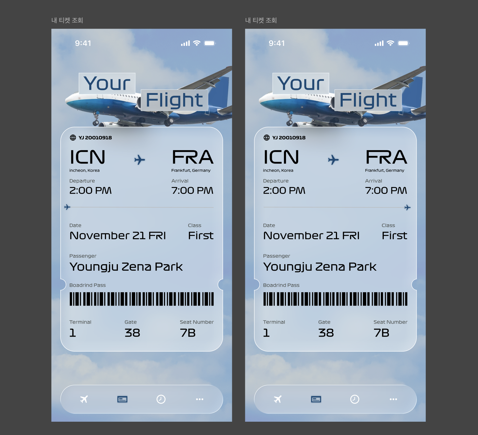 지난 번에 항공 예약 UI 디자인이 있어서, 추가해보았다!
