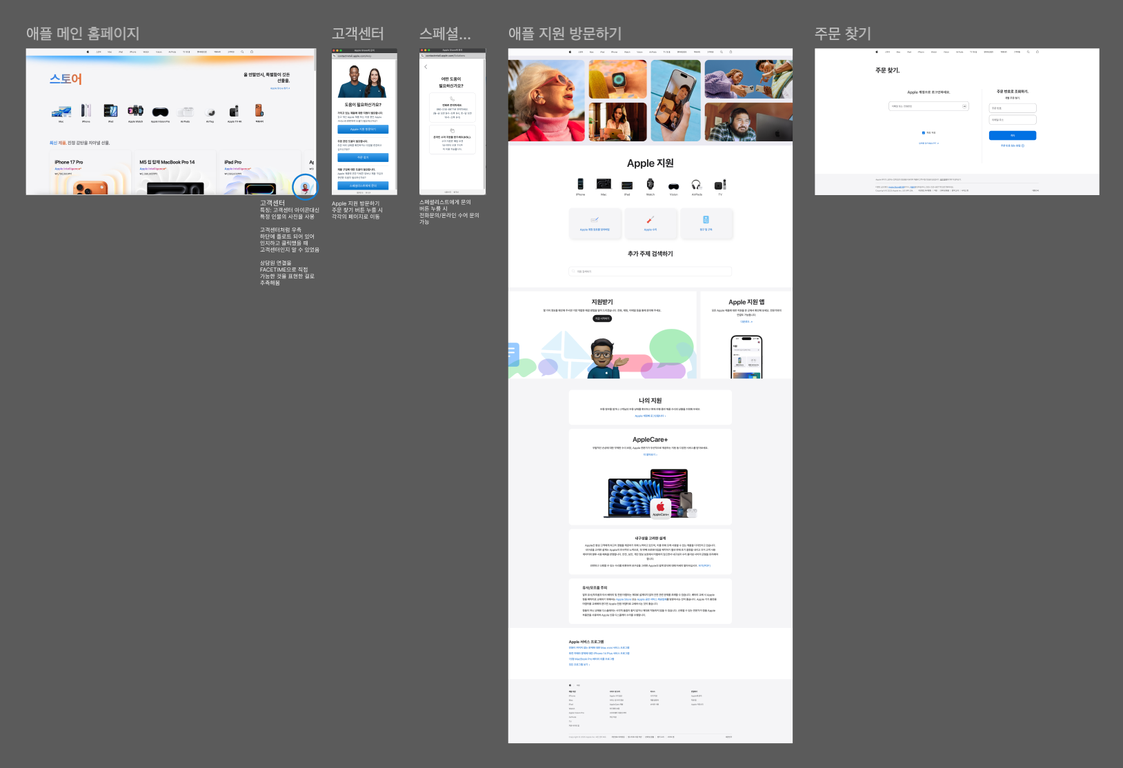 지원 방문이나 주문 찾기는 애플의 해당 페이지로 연결되어 있었고, (새 탭으로 열기)