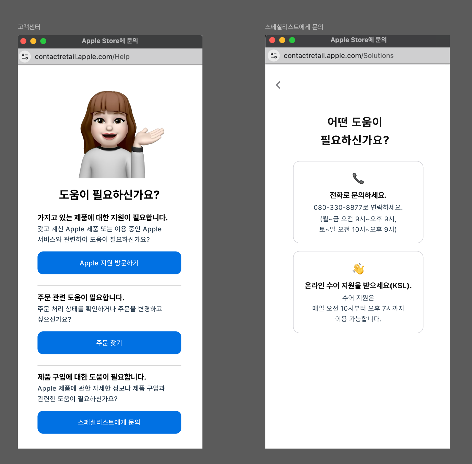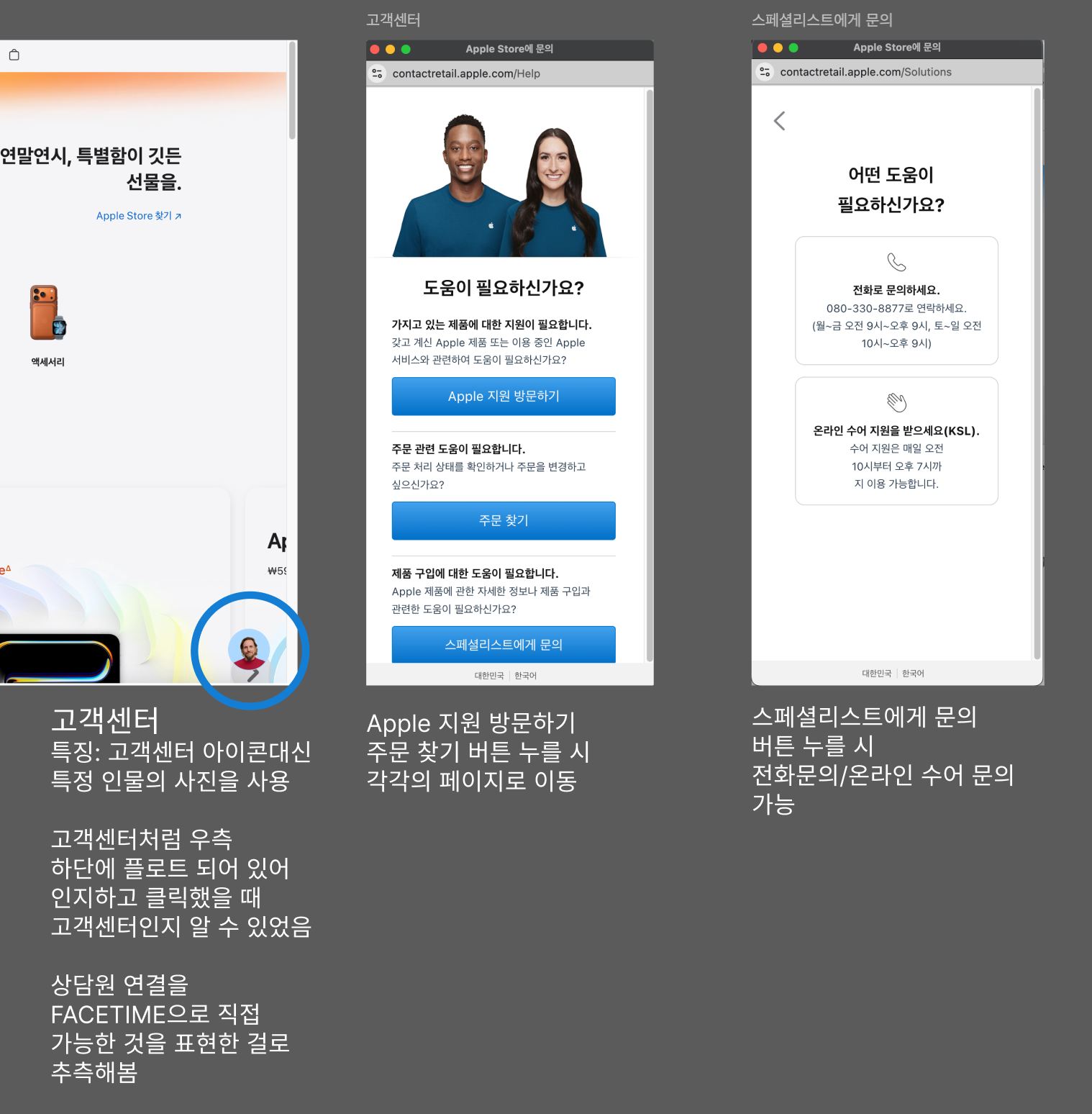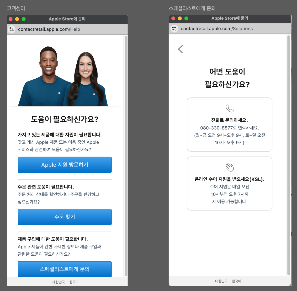 평소 자주 사용한 것은 아니지만, 맥 구매 시 마이그레이션 문제로 사용했던 고객센터인 Apple로 선정하였다.
