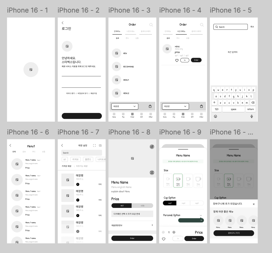 원래는 와이어프레임 이후 ui를 설계하지만, 완성된 ui를 보고 와이어프레임이 어떻게 제작되었는지 상상하여 그려보았다. 와이어프레임을 어떻게 제작하는지도 느낄 수 있었다. 아직은 피그마를 배우지 않아서 시간도 오래 걸리고 어려웠다 ... 🥹🥹