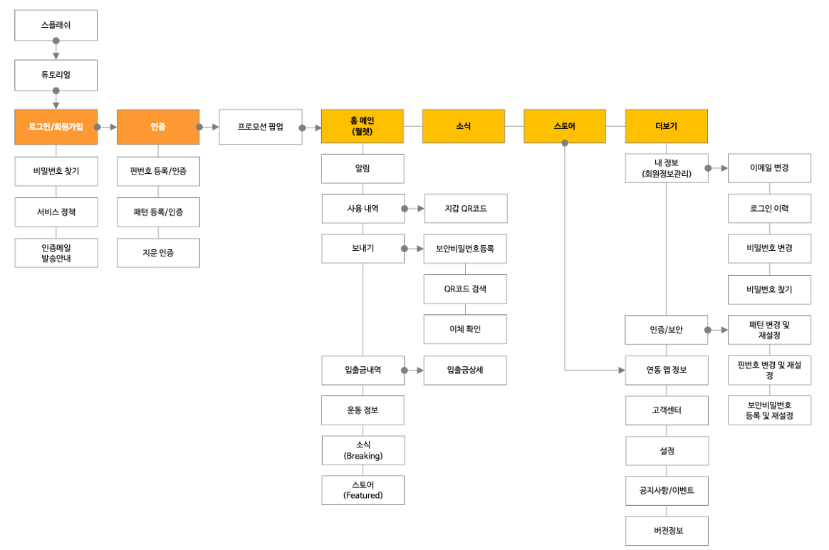 태스크 플로우(Task Flow): 사용자가 특정 목표를 달성하기 위해 거치는 행동 단계를 순서대로 정리
