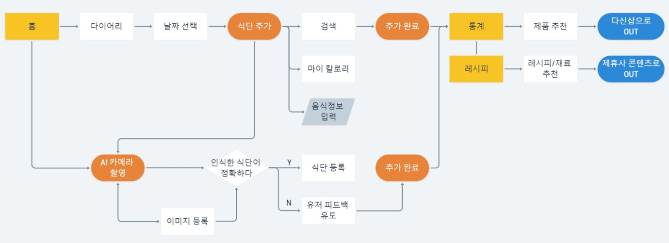 유저 플로우(User Flow): 특정 사용자의 실제 서비스 이용 흐름에 초점을 맞춘 설계
