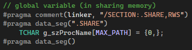 이제 왜 공유메모리에 만드는지 알겠다. 모든 프로세스에서 타깃 프로세스 이름을 공유하기 위해서 접근할 수 있도록 버퍼를 공유메모리 섹션에 두는 것이다.