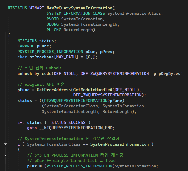 그걸 구현한게 NewZwQuerySystemInformation이다.