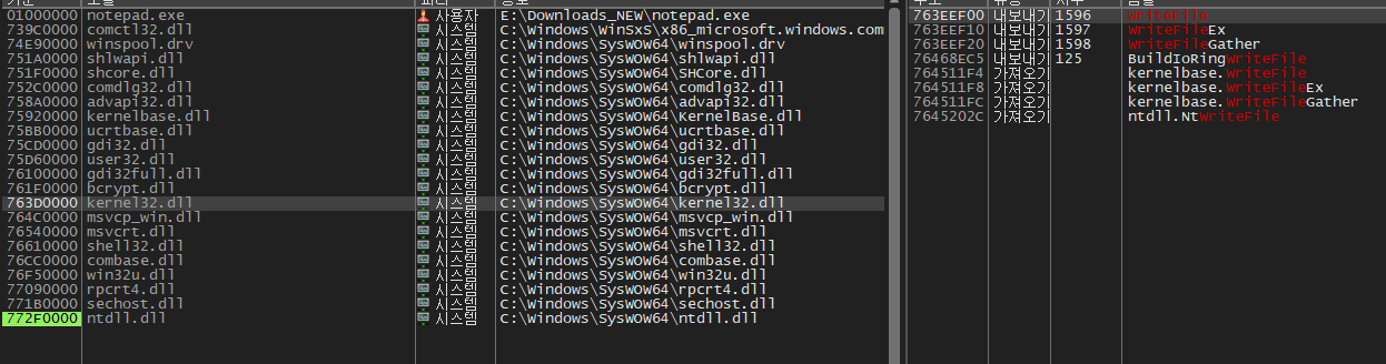 모든 프로세스는 기본적으로 kernel32.dll이 로드되고 kernel32.dll은 ntdll.dll을 로드하지.