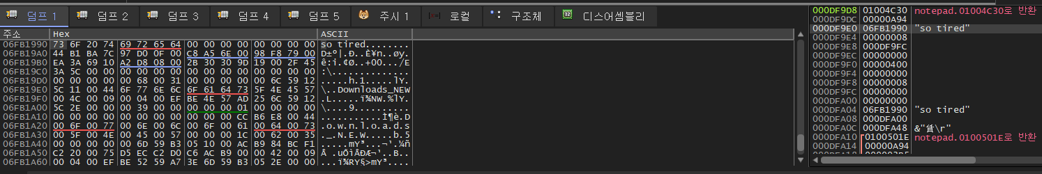 노트패드 코드가 msvcrt!fopen() api 호출