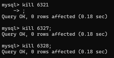 kill을 통해 lock걸린 프로세스를 강제 종료 시켰더니 drop table이 바로 작동됐다.