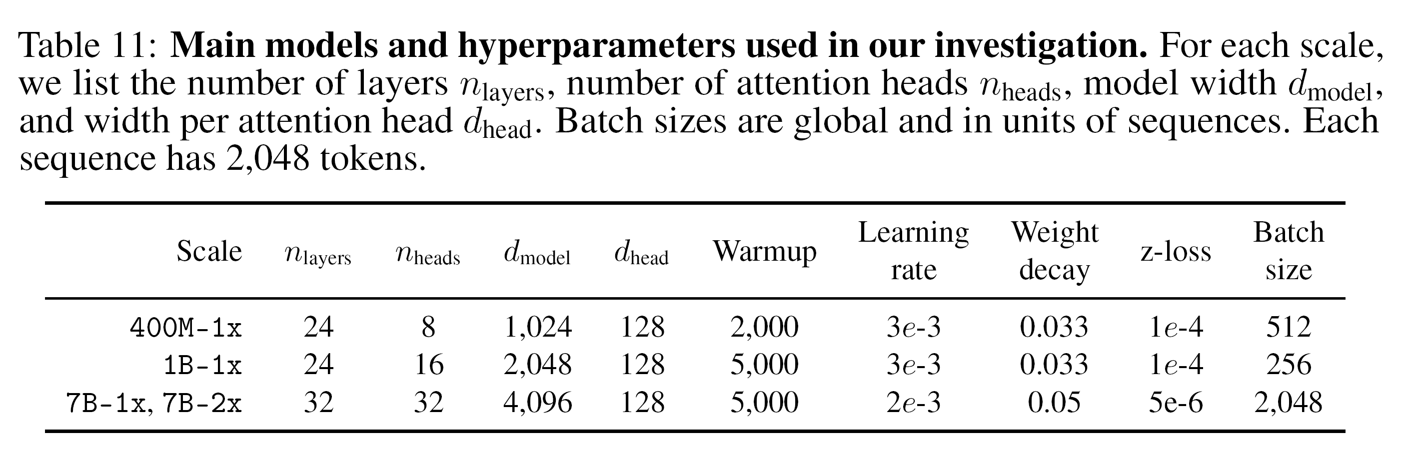 여기에서, Scale은 (모델 파라미터 수)-(Chinchilla multiplier)를 의미한다. 모델 파라미터 수를 , Chinchilla multiplier를 라고 할 때, Scaling-law에 따라 모델 파라미터 수에 따른 학습 토큰 수 는 다음과 같이 정의한다.