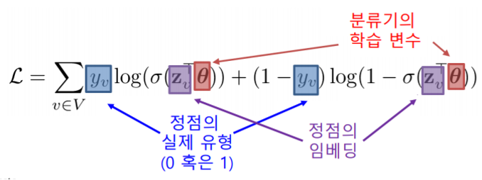 정점 분류의 손실함수를 이용한 -- 학습도 가능하다.