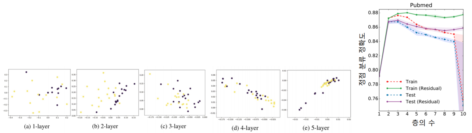 지나친 획일화-문제는 그래프 신경망의 층 수가 증가하면서 정점의 임베딩이 서로 유사해지는 현상