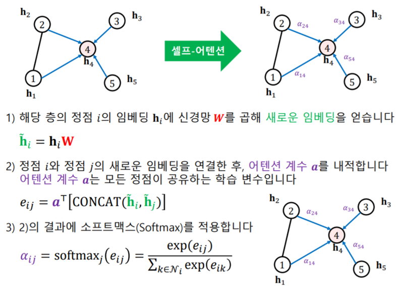 그래프 어텐션 신경망 에서는 가중치 자체도 학습