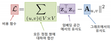 정점 임베딩을 위해서 정점간 거리를 보존하도록 하는 손실함수