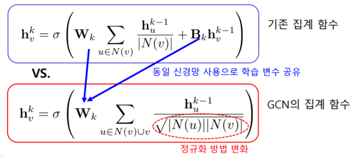 그래프 합성곱 신경망에서도 단순히 연결성을 고려한 가중치로 평균