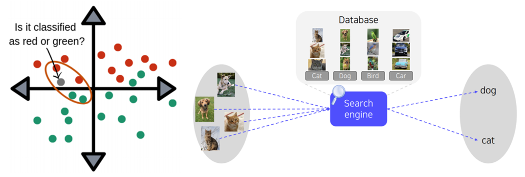 - classifies a query data point according to reference points closest to the query