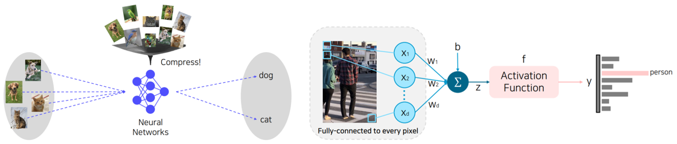 - takes every pixel of an image as input