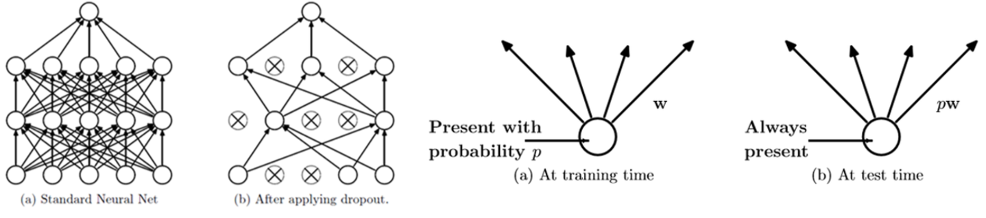 - 비슷한 위치에 있는 퍼셉트론은 비슷한 특징에 집중해 버리는 상호 동조(co-adaptation)를 예방하는 의미