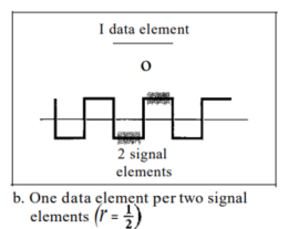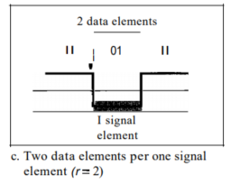 밑에 그림은 각 신호 요소에 의해 전달되는 데이터 요소의 수인 비율을 나타냈다.